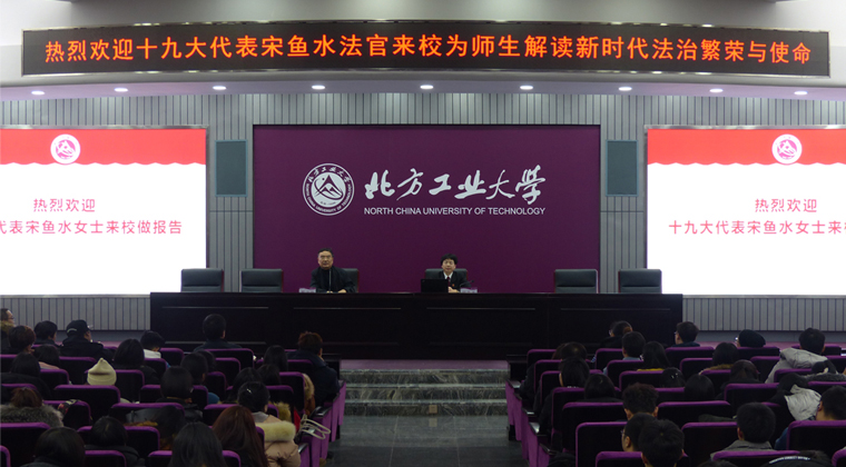 12月18日晚,中共中央候補委員、黨的十九大代表、全國婦聯副主席(兼)、北京知識產權法院黨組成員、副院長宋魚水法官受邀來我校以《習近平新時代的法治繁榮與使命》為題舉辦專場報告會,宣講黨的十九大精神。校黨委書記鄭文堂出席并主持了報告會,文法學院班子成員、學工部領導以及300余名師生聆聽了報告會。宋魚水代表結合自己的參會經歷,與大家分享了她的參會感受,并從法治思維角度深入解讀了黨的十九大報告,就十九大的精...