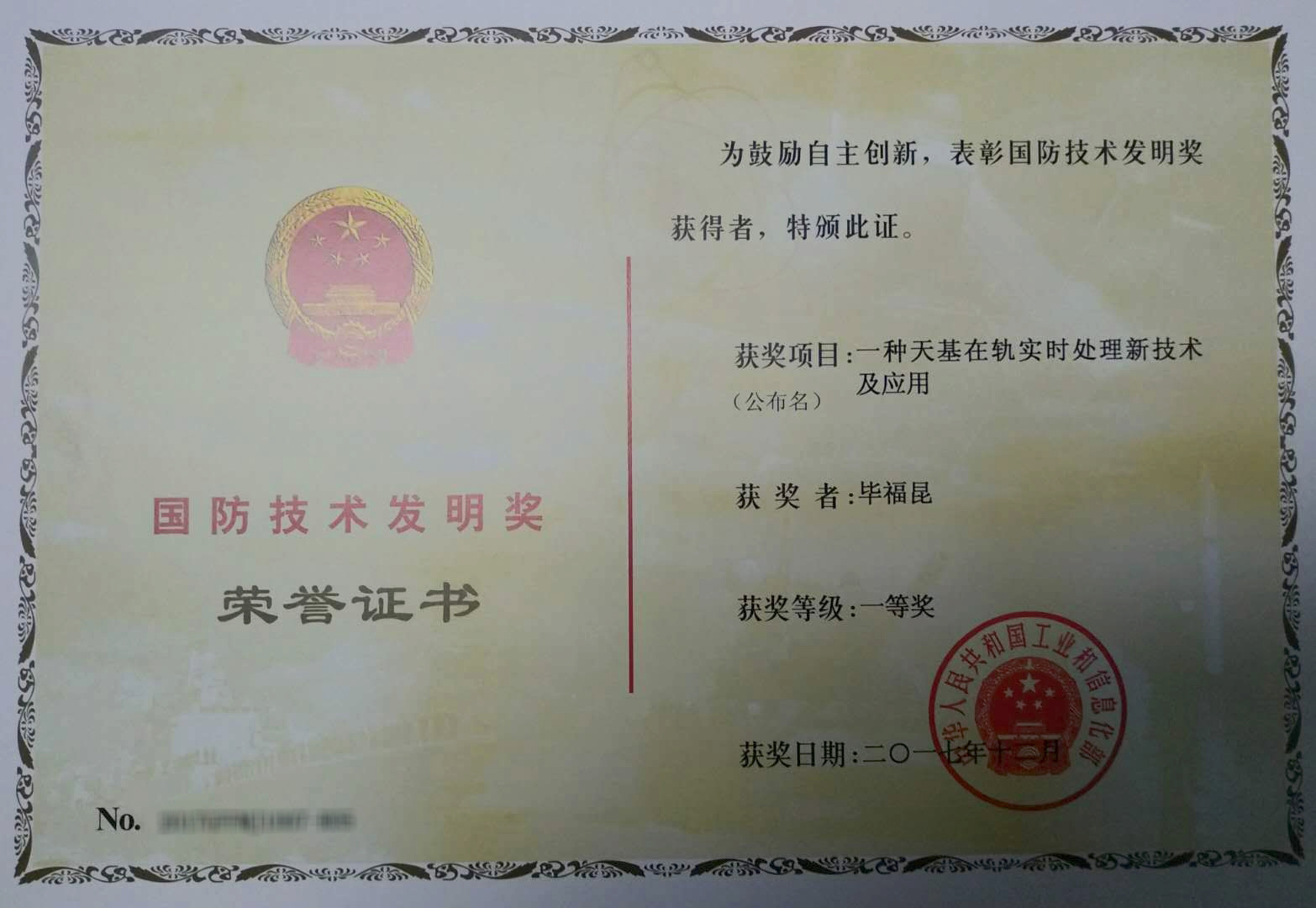 近日,2018年國防科技工業工作會議在京隆重召開,會議對獲得2017年度國防科學技術獎的代表進行了表彰。我校電子信息工程學院畢福昆副教授作為主要完成者之一的“一種天基在軌實時處理新技術”項目,獲得2017年度國防技術發明一等獎。國防科學技術獎主要獎勵為我國國防科技工業科技進步作出突出貢獻的單位、個人和團隊。國防科學技術獎勵工作緊密圍繞國家和國防重大戰略需求,在激勵國防科技自主創新、支撐高技術武器裝備科研生...