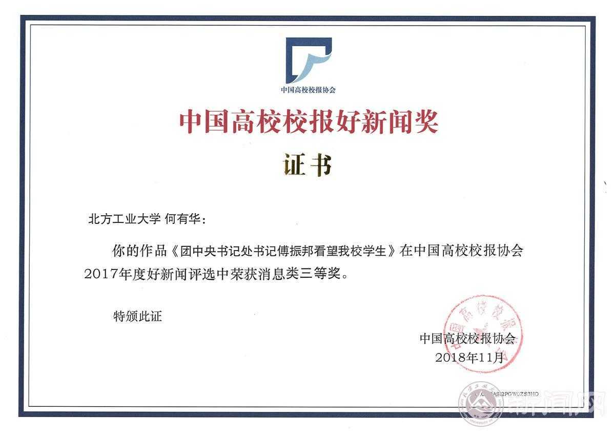 ?12月3日,中國(guó)高校校報(bào)協(xié)會(huì)2018年年會(huì)暨第三屆中國(guó)高校傳媒發(fā)展高端論壇在福州開幕。會(huì)上揭曉了2017年度中國(guó)高校校報(bào)好新聞獎(jiǎng)評(píng)選結(jié)果,我校共有4件作品獲獎(jiǎng)。其中,《多種姿態(tài)奔跑的人生》(作者梁琳艷)獲得通訊類二等獎(jiǎng)、《用書信見歷史 以情感傳文化》(作者單婷)獲得言論類二等獎(jiǎng)、《團(tuán)中央書記處書記傅振邦看望我校學(xué)生》(作者何有華)獲消息類三等獎(jiǎng)、《只有去過(guò)遠(yuǎn)方 才懂父母情長(zhǎng)》(作者楊可兒)獲新媒體類三等獎(jiǎng)...