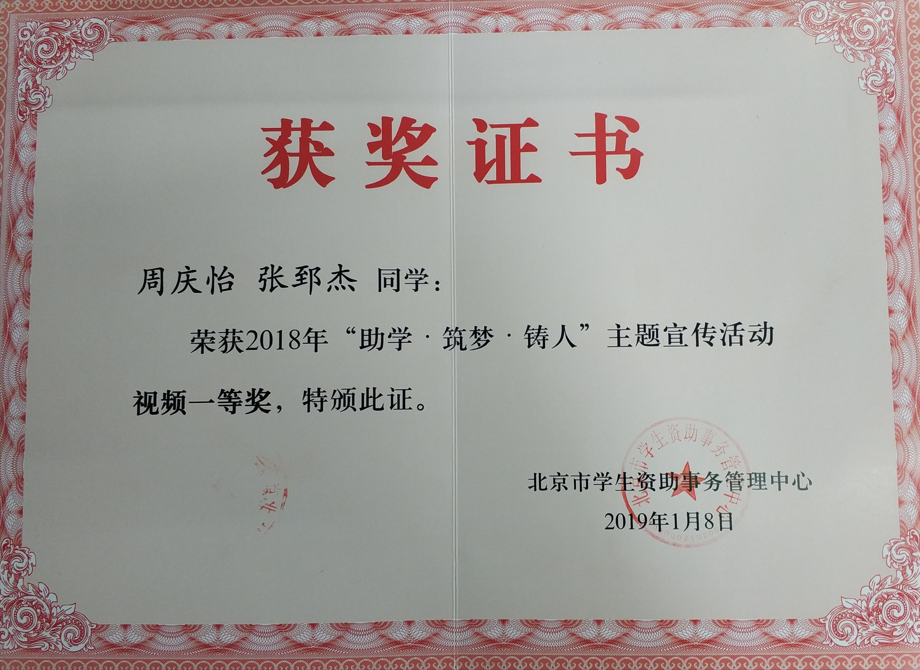 日前獲悉,在第五屆“助學?筑夢?鑄人”主題宣傳活動中,我校文法學院英語17-1班周慶怡、日語17-1班張郅杰的作品榮獲本次活動北京地區視頻一等獎,且為我校視頻類參賽作品中唯一獲獎作品。本次活動由教育部全國學生資助中心、中國銀行、中國青年報社共同主辦,是教育部助學育人思政工程一個組成部分。旨在發揮學生專業優勢學習貫徹黨的十九大精神,大力宣傳國家資助政策及成效,激勵受助學生奮發自強、立志成才、感恩奉獻。編...