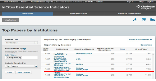 9月11日基本科學指標數據庫(Essential Science Indicators,簡稱ESI)發布的最新數據顯示:北方工業大學工程學(Engineering)學科首次進入ESI全球排名前1%,標志著我校工程學學科邁入國際高水平行列。本次北京地區僅有北方工業大學、北京建筑大學2所高校新進入ESI全球排名1%。 截至目前,北京市市屬高校工程學科進入ESI全球排名1%的僅有3所,分別是:北京工業大學、北方工業大學、北京建筑大學。北京市屬高校中擁有ESI前1%學...