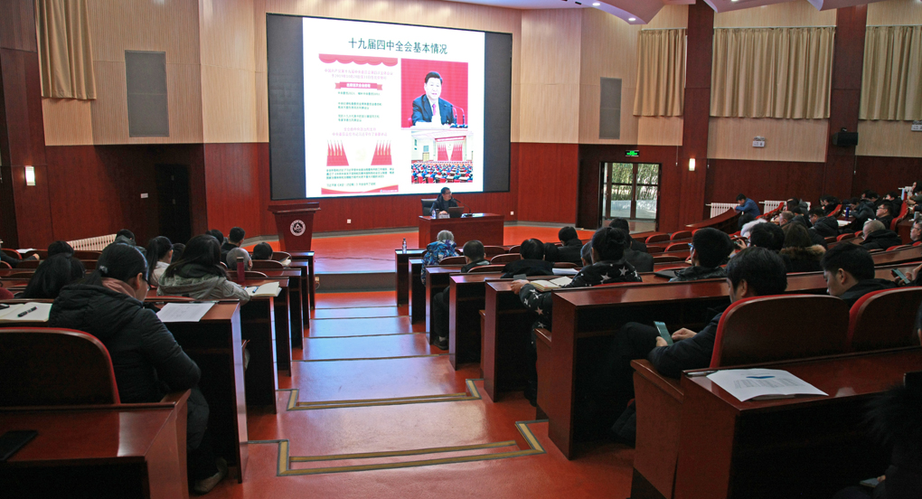 ??12月16日下午,學校在敦品樓342會議室召開黨委理論學習中心組(擴大)學習暨學習貫徹黨的十九屆四中全會精神系列宣講啟動會。中心組全體成員參加了學習,校黨委?書記鄭文堂主持會議。馬克思主義學院教師張茂林首先做了題為“馬克思主義制度觀的理論意蘊——學習黨的十九屆四中全會精神”的輔導報告,報告從制度與社會的辯證關系、制度與改革的必然聯系、制度與發展的相互作用等三個方面闡述了馬克思主義的制度觀,并強調中...