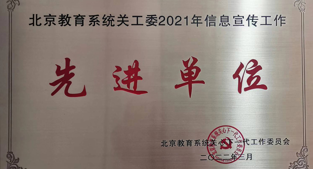 近日,北京教育系統(tǒng)關(guān)心下一代工作委員會召開2022年工作視頻會,會議通報(bào)了教育部關(guān)工委2021年“讀懂中國”評選結(jié)果,宣讀了北京教育系統(tǒng)關(guān)工委“讀懂中國”活動評審結(jié)果,表彰了2021年北京教育系統(tǒng)關(guān)工委信息宣傳工作先進(jìn)單位和個(gè)人。我校關(guān)工委喜獲多項(xiàng)獎(jiǎng)勵(lì)。在教育部關(guān)工委2021年“讀懂中國”活動評比中,我校報(bào)送的《紅心向黨初衷不改》一文獲評優(yōu)秀征文,學(xué)校關(guān)工委獲得“優(yōu)秀組織獎(jiǎng)”。在北京教育系統(tǒng)關(guān)工委2021年“讀懂...