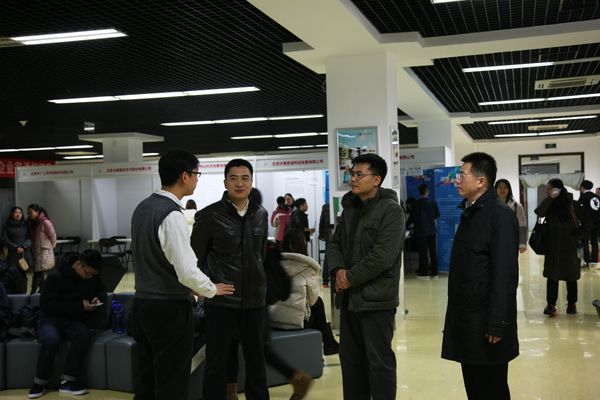 11月19日下午,黨委書記謝輝來到學生服務樓三層“2016屆畢業生雙選會”現場,調研指導畢業生就業工作。