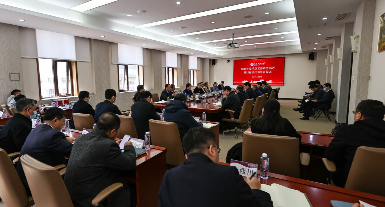 3月28日,學校在敦品樓342會議室舉行2024年度重點工作任務部署暨目標責任書簽訂儀式,對2024年學校重點工作進行再部署再落實。全體在校領導、各職能部門負責人、學院院長及二級單位黨委書記參加會議。校黨委副書記田紅芳主持會議。黨委副書記、校長張立峰分別與信息學院、機材學院、建藝學院、土木學院、經管學院、文法學院、理學院等7個學院院長,以及人事處(教師工作部)、教務處、科研院(科技成果轉化中心)、研究生院、學...