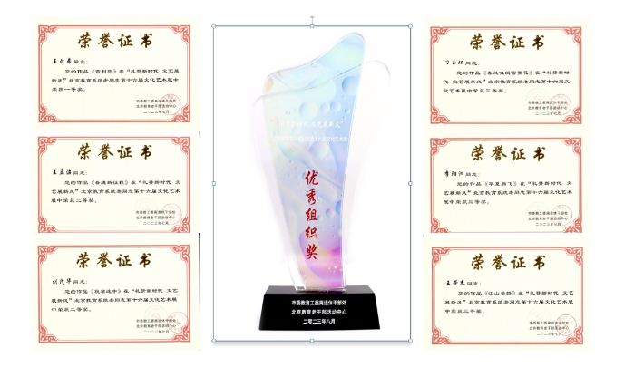 近日,由北京市委老干部局、北京教育系統組織的“中國共產黨人偉大精神主題書畫作品征集展示活動”“文化藝術展”“健身項目線上展示活動”等活動公布評審結果,我校取得喜人成績,共獲得19個獎項(健康風采獎1項、優秀組織獎1項、一等獎1項、二等獎2項、三等獎5項、優秀獎9項)。在北京市委老干部局舉辦的中國共產黨人偉大精神主題書畫作品征集展示活動中,我校退休老同志王立昭、劉金棟榮獲三等獎。在“禮贊新時代文藝展新風...