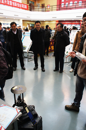 11月27日下午,鄭文堂校長在教務處處長王景中的陪同下來到我校“2015年實驗室開放暨創新創業展”現場進行調研指導。