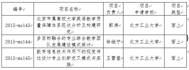 從北京市教委《北京市教育委員會關于批準2015年度北京高等學校教育教學改革立項項目的通知》京教函〔2015〕548號文件獲悉,我校三個項目獲評2015年度北京高等學校教育教學改革立項項目,具體名單如下: 學校要求獲得...