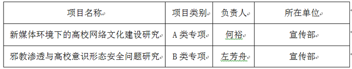 日前,從北京市委教育工委《2015年北京高校宣傳思想工作專項課題中標通知》獲悉,我校2項課題獲評2015年北京高校宣傳思想工作專項項目,立項名單如下: 北京高校宣傳思想專項課題是北京市委教育工委為進一步加強宣...