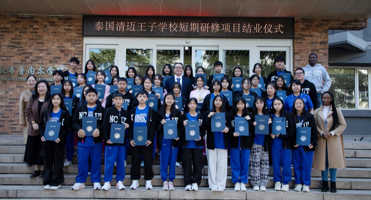 10月15日上午,泰國清邁王子學校短期語言文化研修項目結業(yè)典禮在廣學樓103教室舉行。本期語言文化項目為期14天,共有43名泰國師生參加。北方工業(yè)大學黨委副書記、校長張立峰對泰國清邁王子學校各位學生的順利結業(yè)表示祝賀,并與泰國師生親切合影留念。學生們分組進行了學習成果匯報,展示了自己在中文學習、文化體驗以及參觀交流中的心得感受,同時表達了對中國文化的熱愛與敬仰。帶隊教師王美佳代表清邁王子學校對我校的精心組...