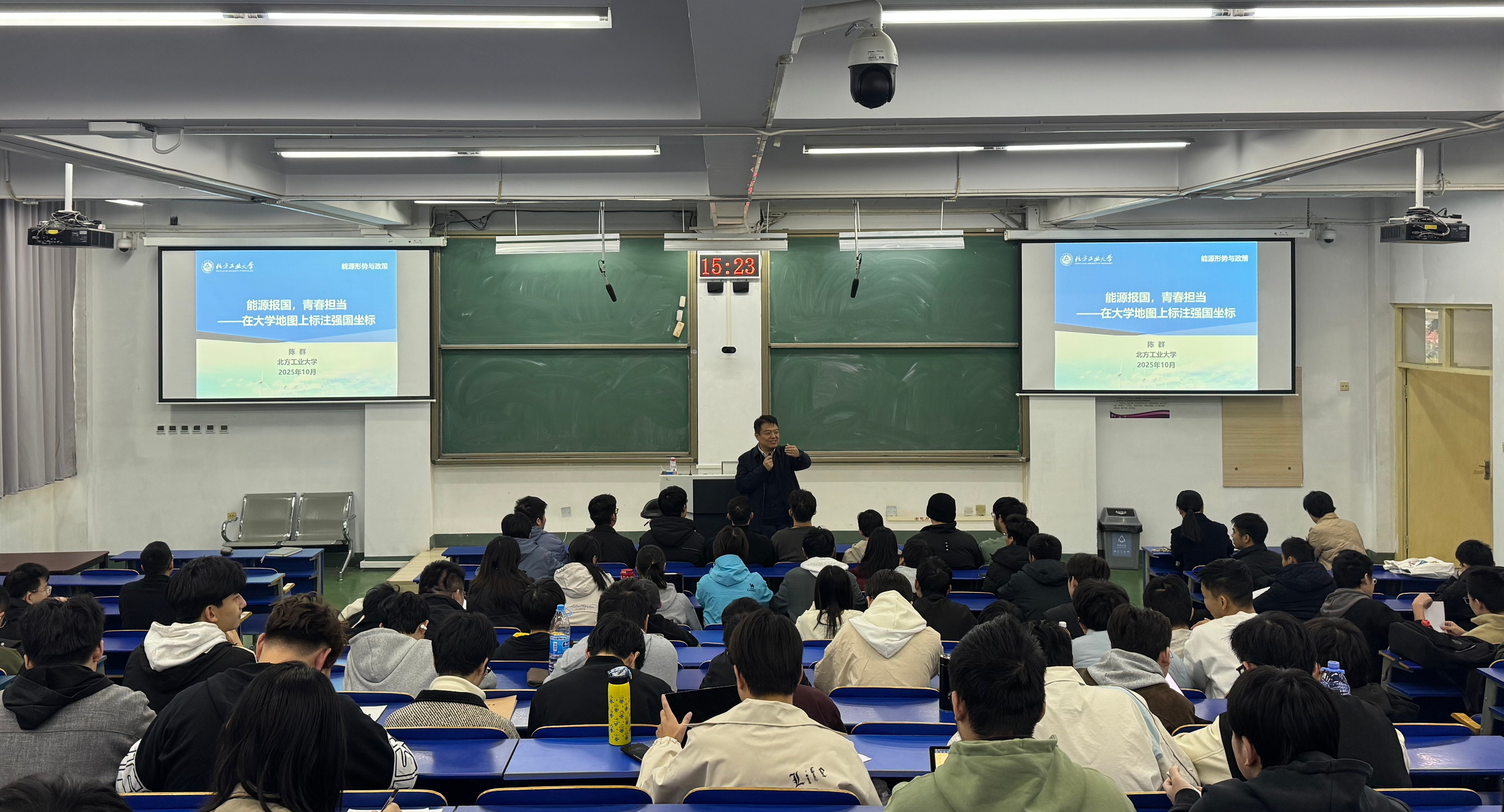 10月22日下午,黨委常委、副校長陳群走進(jìn)浩學(xué)東202教室,以《能源報(bào)國,青春擔(dān)當(dāng)——在大學(xué)地圖上標(biāo)注強(qiáng)國坐標(biāo)》為題,為儲(chǔ)能、電氣、新能源三個(gè)專業(yè)的2023級(jí)本科生講授形勢(shì)與政策課。學(xué)院黨委副書記、輔導(dǎo)員一同參加學(xué)習(xí)。陳群圍繞“能源報(bào)國”核心主題,從五個(gè)維度系統(tǒng)展開講授。他以黨的二十大報(bào)告中關(guān)于推動(dòng)綠色發(fā)展、建設(shè)美麗中國的戰(zhàn)略部署為引領(lǐng),深入闡釋了能源轉(zhuǎn)型對(duì)國家現(xiàn)代化建設(shè)的深遠(yuǎn)影響,強(qiáng)調(diào)能源安全是國家安全...