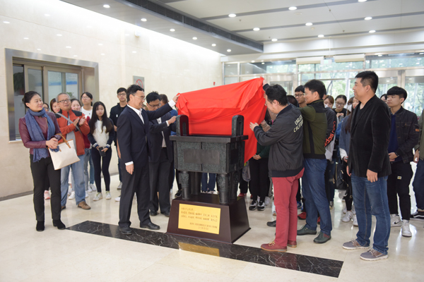 10月13日下午,陜西校友向?qū)W校捐贈司母戊方鼎揭幕儀式在博遠樓一層大廳舉行。