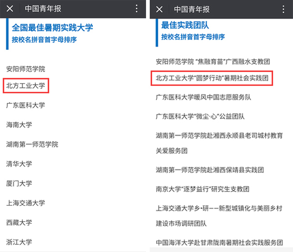 近日,中國青年報社發布了2016全國百強暑期實踐團隊名單,我校獲得了“全國最佳暑期實踐大學”獎項,三支大學生暑期社會實踐團隊分別獲得“最佳實踐團隊”、“優秀實踐團隊”、“百強實踐團隊”的獎項。
