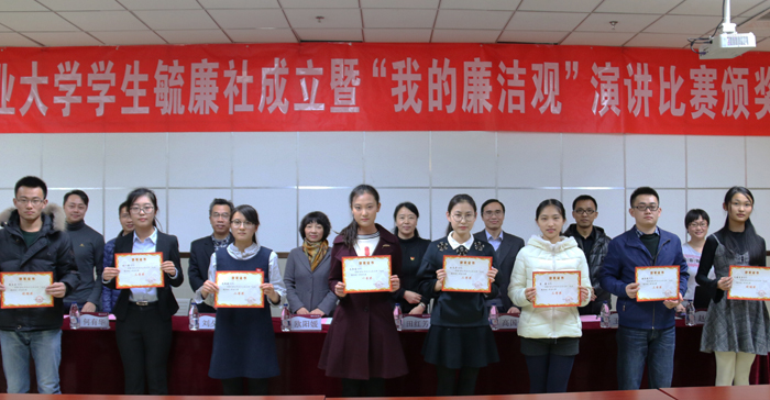 12月22日下午,校團委在學生服務樓318會議室舉行學生毓廉社成立暨“我的廉潔觀”演講比賽頒獎儀式。