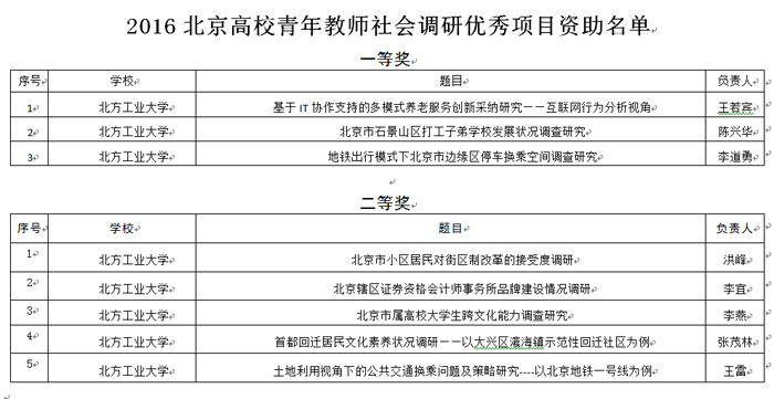 近日,從市教育工委《關于公布2016年北京高校青年教師優秀社會調研成果資助名單及優秀組織單位的通知》獲悉,我校在2016年度的北京市青年教師社會調研成果評選活動中再獲佳績。