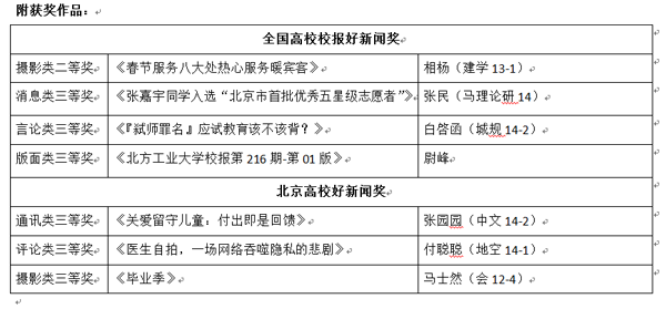 日前,我校校報在“全國高校校報好新聞獎”和“北京高校好新聞獎”評選中斬獲多個獎項,獲“全國”獎項4項、“北京市”獎項3項。