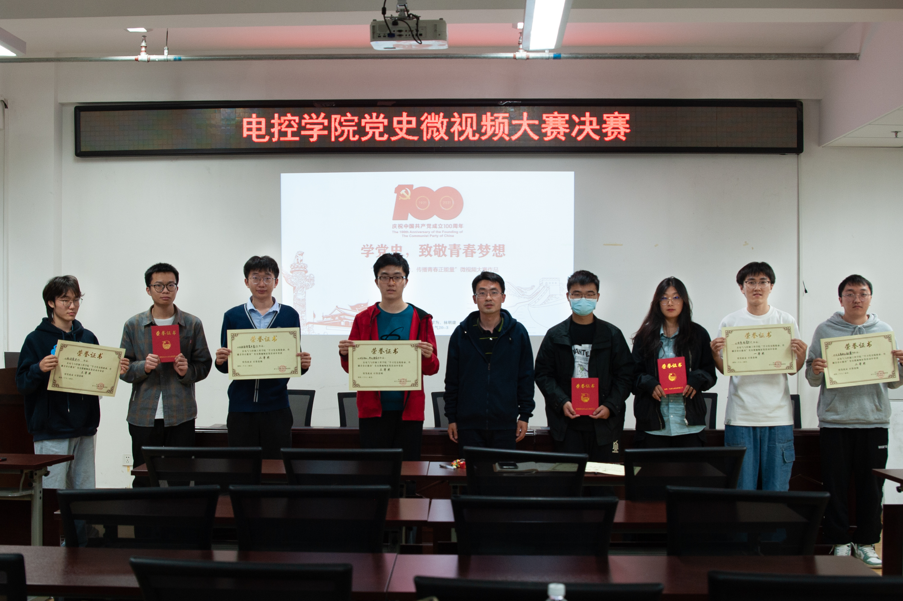 為進(jìn)一步開展好“永遠(yuǎn)跟黨走”主題宣傳教育活動,鼓勵(lì)引導(dǎo)廣大青年學(xué)生積極運(yùn)用網(wǎng)絡(luò)文化作品創(chuàng)作優(yōu)秀的黨史學(xué)習(xí)素材,全面提升網(wǎng)絡(luò)素養(yǎng),唱響時(shí)代主旋律,著力培養(yǎng)德智體美勞全面發(fā)展的社會主義建設(shè)者和接班人。按照校學(xué)工部的統(tǒng)一部署,電控學(xué)院團(tuán)委組織開展了以“學(xué)習(xí)黨史踐使命,傳播青春正能量”為主題的黨史微視頻大賽。本次大賽從全院學(xué)生中征集優(yōu)秀作品,經(jīng)過緊張的預(yù)選賽,共有8份作品進(jìn)入決賽。并于4月26日晚在博遠(yuǎn)樓4...