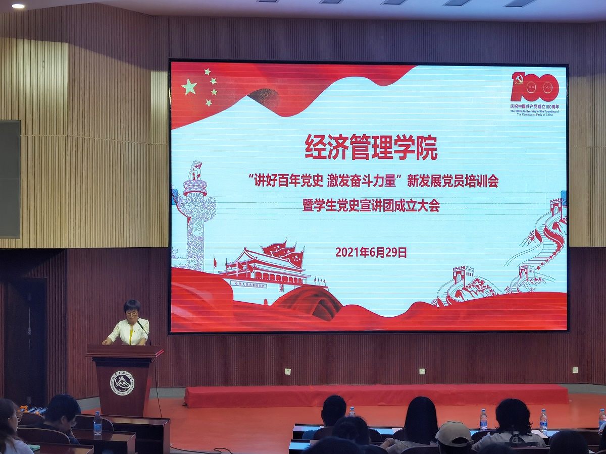 百年征程波瀾壯闊,百年初心歷久彌堅。為了進一步開展好黨史學習教育,迎接中國共產黨成立100周年,引導廣大青年更好的學史明理、學史增信、學史崇德、學史力行,通過黨史學習教育自覺承擔起新時代的使命。經濟管理學院“講好百年黨史 激發奮斗力量”新發展黨員培訓會暨學生黨史宣講團成立大會于6月29日晚在文化會堂舉行。經濟管理學院黨委委員、各學生黨支部書記、各年級輔導員、新發展黨員參加了此次大會,會議由學院黨委副書記趙...