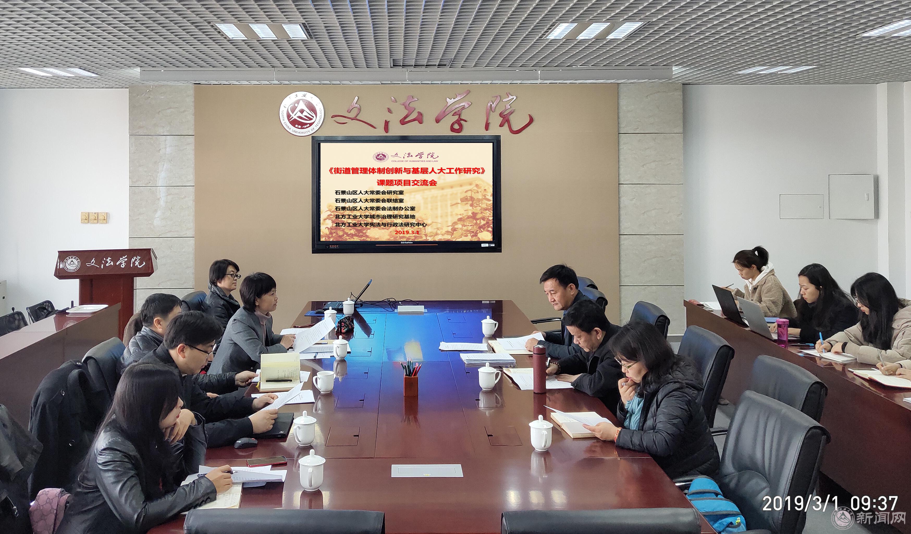 3月1日,我校與石景山區(qū)人大常委會(huì)合作課題《街道管理體制創(chuàng)新與基層人大工作研究》項(xiàng)目交流活動(dòng)在文法學(xué)院學(xué)術(shù)會(huì)議室舉行。石景山區(qū)人大常委會(huì)研究室、法制辦、代表聯(lián)絡(luò)室等相關(guān)領(lǐng)導(dǎo)參會(huì),文法學(xué)院憲法與行政法學(xué)教師團(tuán)隊(duì)成員、研究生參加了交流活動(dòng)。會(huì)議由文法學(xué)院院長(zhǎng)劉澤軍教授主持。石景山區(qū)人大常委會(huì)研究室主任張清、法制辦主任張培莉、代表聯(lián)絡(luò)室主任李成等相關(guān)領(lǐng)導(dǎo)分別就石景山區(qū)人大基于課題研究領(lǐng)域的前沿實(shí)踐問(wèn)題...