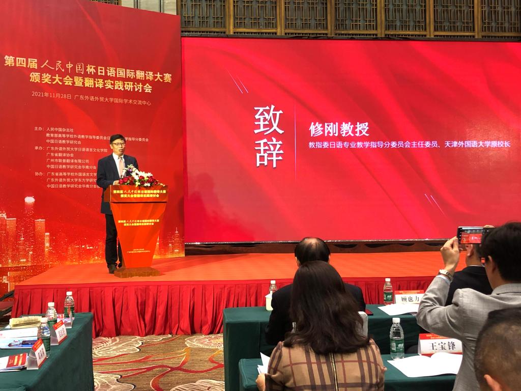 11月28日,由教育部高等學(xué)校外國(guó)語(yǔ)言文學(xué)類專業(yè)教學(xué)指導(dǎo)委員會(huì)日語(yǔ)專業(yè)教學(xué)指導(dǎo)分委員會(huì)主辦,《人民中國(guó)》雜志社承辦的第四屆“人民中國(guó)杯”日語(yǔ)國(guó)際翻譯大賽,在廣東外語(yǔ)外貿(mào)大學(xué)舉行頒獎(jiǎng)典禮和翻譯實(shí)踐研討會(huì)。我校日語(yǔ)學(xué)科2021級(jí)研究生宗小靜榮獲漢譯日組三等獎(jiǎng)和日譯漢組三等獎(jiǎng)、2019級(jí)研究生張瑞麗榮獲日譯漢組三等獎(jiǎng),聶中華老師也被評(píng)選為“優(yōu)秀指導(dǎo)老師”。“人民中國(guó)杯”日語(yǔ)國(guó)際翻譯大賽是目前國(guó)內(nèi)級(jí)別最高、影響最廣...