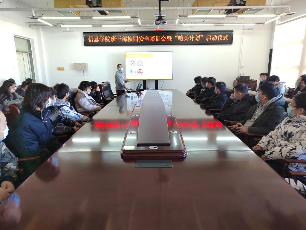 為強(qiáng)化學(xué)生安全意識(shí),提高安全防范能力,進(jìn)一步培育一支”平安校園”建設(shè)中有擔(dān)當(dāng)?shù)膶W(xué)生干部隊(duì)伍,11月30日中午,信息學(xué)院組織召開了校園安全培訓(xùn)會(huì)暨“哨兵計(jì)劃”啟動(dòng)儀式,各班班長(zhǎng)、生活委員共100余人參加了培訓(xùn)會(huì)。會(huì)上,學(xué)生干部代表就消防安全、人身安全、財(cái)產(chǎn)安全、交通安全、信息安全等方面進(jìn)行了講解,引導(dǎo)大家充分發(fā)揮學(xué)生干部的帶頭作用,爭(zhēng)當(dāng)安全知識(shí)的倡導(dǎo)者,安全文化的傳播者,平安校園的建設(shè)者和安全隱患的“小...