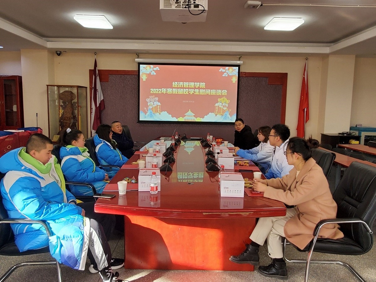 1月31日上午,在除夕之日經(jīng)濟(jì)管理學(xué)院在勵(lì)學(xué)樓201會(huì)議室舉行2022年寒假留校學(xué)生慰問(wèn)活動(dòng),學(xué)院院長(zhǎng)趙繼新、黨委書(shū)記王偉賓、黨委副書(shū)記趙潔及留校學(xué)生參加了慰問(wèn)活動(dòng)。活動(dòng)中,與會(huì)同學(xué)有的分享了自己的冬奧志愿服務(wù)經(jīng)歷,表達(dá)了能夠參與到國(guó)家重大活動(dòng)的喜悅之情;有的介紹了家鄉(xiāng)的傳統(tǒng)習(xí)俗,描繪了留校同學(xué)一起裝點(diǎn)宿舍的經(jīng)過(guò);還有的同學(xué)表示,這是自己在外度過(guò)的第一個(gè)春節(jié),對(duì)家鄉(xiāng)的思念、父母的思念情不自禁。活動(dòng)中,學(xué)...