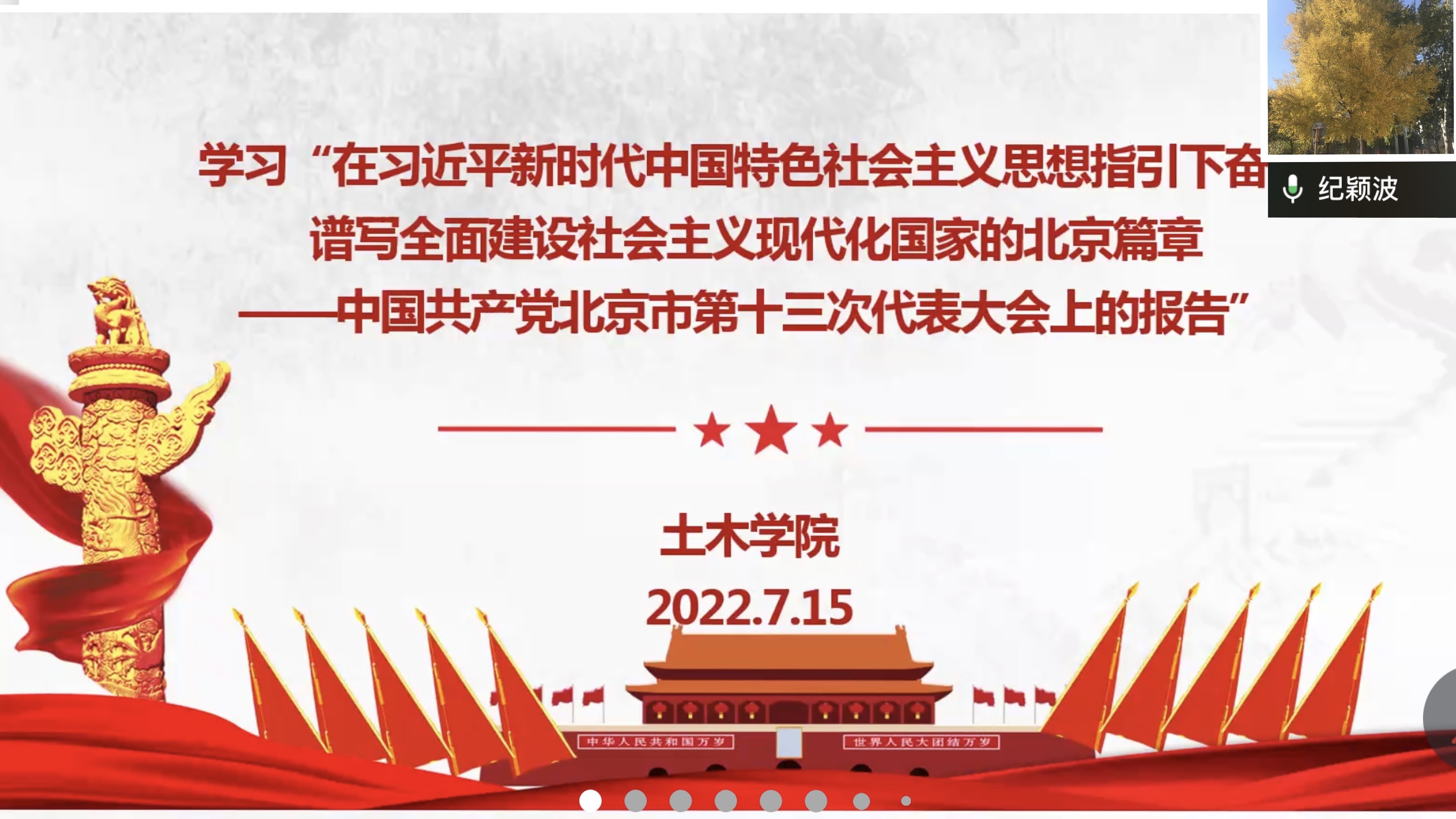 7月15日,土木工程學院通過網絡組織黨員學習北京市第十三次黨代會報告,學院院長紀穎波領學,學院黨委委員、系主任、副主任、黨支部書記共計26人參加了學習。學習會由學院黨委書記劉婉立主持,?紀穎波從深入落實首都城市戰略定位,首都功能不斷優化提升等十個方面對北京過去五年的工作進行了回顧,表示我們要清醒地認識困難挑戰,從大力推動新時代首都發展,努力在全面建設社會主義現代化國家新征程上走在前列;牢牢把握首都城...