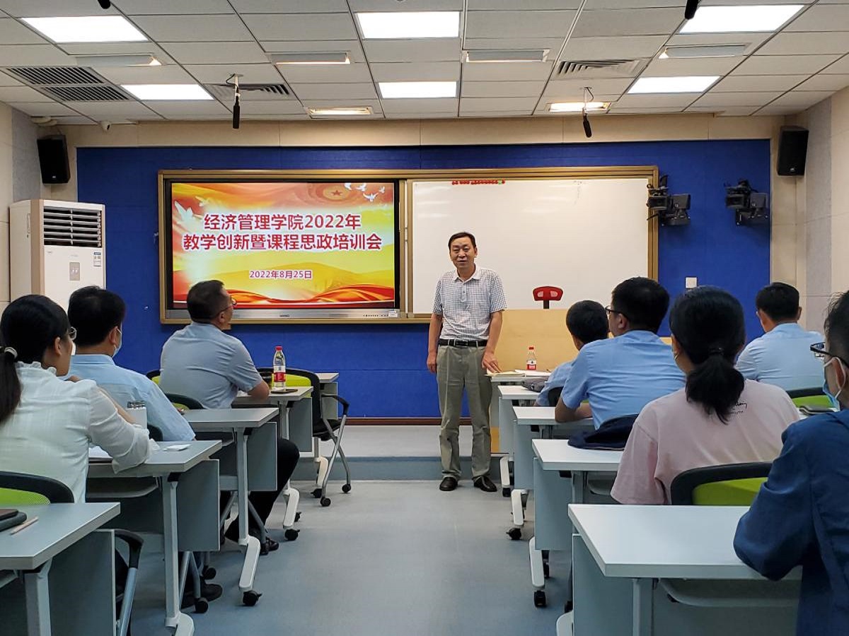 8月25日下午,經(jīng)管學(xué)院組織召開“2022年教學(xué)創(chuàng)新暨課程思政培訓(xùn)會議”。會議邀請了教務(wù)處劉文楷處長指導(dǎo),并邀請了我校取得北京市及全國教學(xué)創(chuàng)新大賽重要獎項的李道勇、邢志強兩位老師做經(jīng)驗分享。學(xué)院副院長孫強主持會議,學(xué)院領(lǐng)導(dǎo)班子成員、系主任、責(zé)任課教師、18年以來引進新教師及擬報名教學(xué)創(chuàng)新大賽的老師參加了此次培訓(xùn)活動。劉文楷在肯定經(jīng)濟管理學(xué)院取得突出成績的同時提出教學(xué)更需要創(chuàng)新。他對各位教師提出新期待,希...