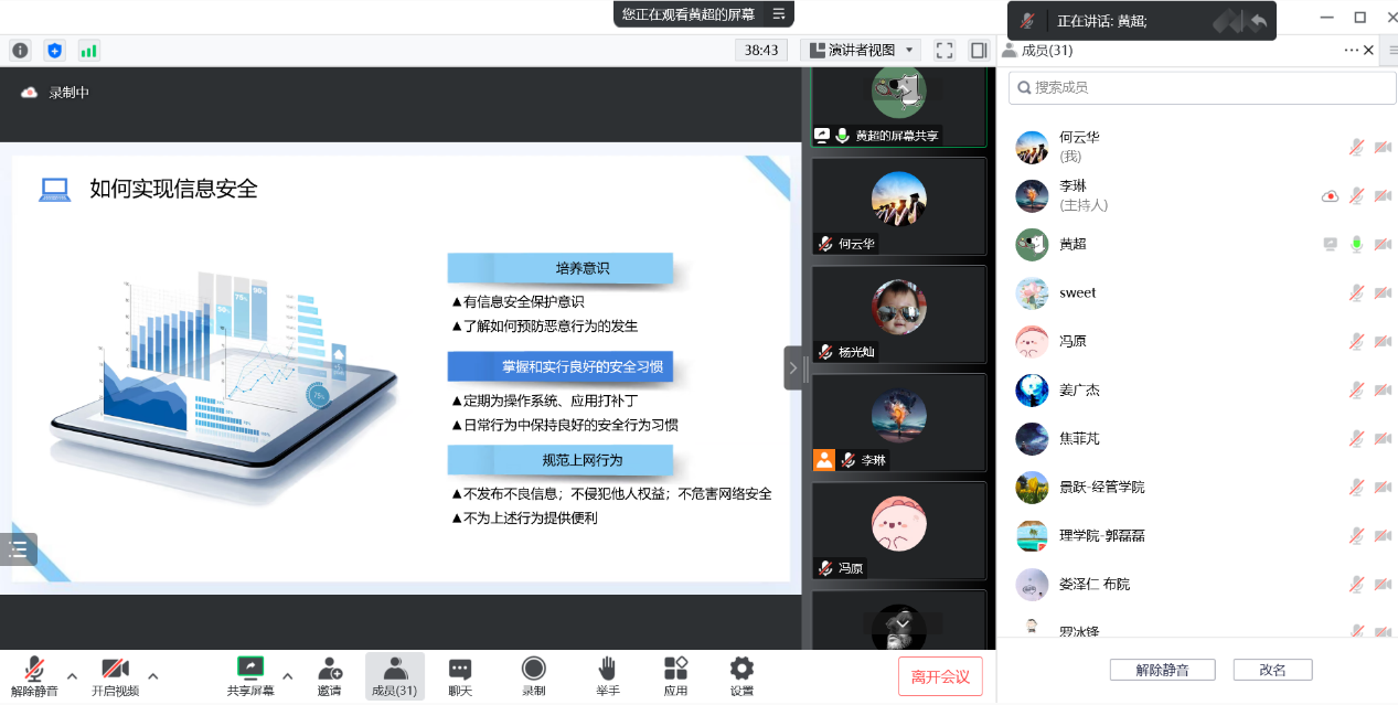 9月29日上午,網絡安全與信息化中心通過線上開展了全校網絡安全培訓,各學院代表、老師共計30人參加了培訓。本次培訓邀請了數據通信科學技術研究所黃超高級工程師主講。黃超高級工程師多次參加護網行動、網鼎杯、隴劍杯等國家級賽事,并取得了優異成績(前1%),對于網絡攻防有著非常豐富的經驗。培訓會上,黃超高級工程師首先介紹了信息與信息安全,通過淺簡意賅的語言使大家認識了信息安全,并且明白了信息安全與個人關系的重...