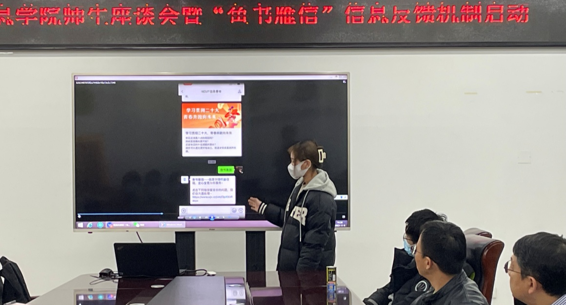 為了進一步了解學生的學習、生活情況,思想動態和需求,更好的傾聽學生的心聲,11月9日信息學院在瀚學樓1014會議室召開師生座談會暨“魚書雁信”信息反饋平臺啟動會,學院黨委副書記陳衛、團委書記楊和家及2022級、2021級學生代表參加座談。座談會旨在充分了解疫情常態化防控狀態下學生的思想動態和學習生活情況,并利用學院NCUT信息青年公眾號平臺啟動“魚書雁信”信息反饋機制,暢通學生信息反饋渠道,解決學生實際訴求。會前...