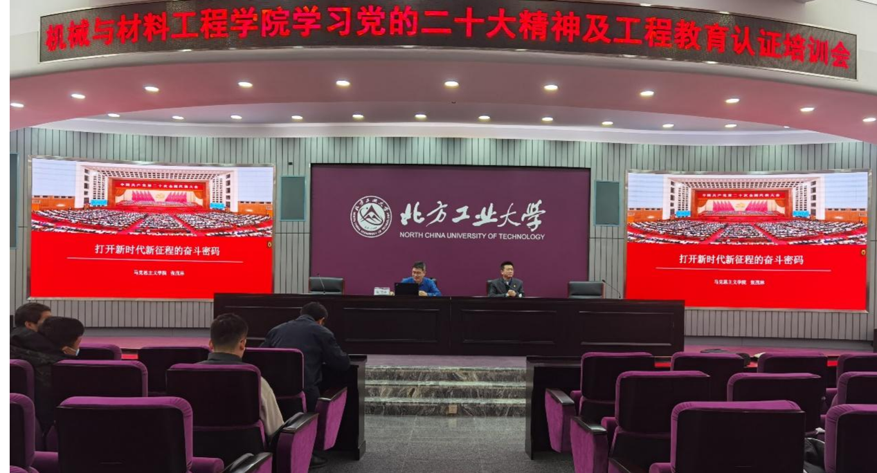 11月11日上午,機械與材料工程學院在廣學樓報告廳舉辦黨的二十大精神專題學習宣講會。馬克思主義學院黨委書記、北京市教學名師張茂林應邀作專題學習宣講報告。全體院班子成員和教師、學生代表參加。院黨委書記王文革主持報告會。報告會上,張茂林以“打開新時代新征程的奮斗密碼”為主題,從黨的二十大報告主要內容、黨的二十大報告重大創新、黨的二十大報告的學習重點等方面,對黨的二十大報告進行進行了梳理、解讀。宣講報告...