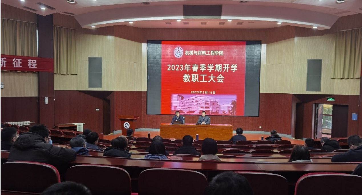 為推動新學(xué)期工作有序、高效開展,動員全體教職工凝心聚力、共謀發(fā)展,機械與材料工程學(xué)院于2月16日召開新學(xué)期全體教職工大會,全體教職工參會,學(xué)院院班子出席會議并講話。院長劉峰斌對2022年秋季學(xué)期的工作進行了總結(jié),并對2023年重點工作及工作任務(wù)進行了部署。他表示,去年在學(xué)校黨委、行政的正確領(lǐng)導(dǎo)下,學(xué)院克服疫情復(fù)雜多變帶來的困難,全院教職工勠力同心、共同打拼,在師資隊伍建設(shè)、專業(yè)建設(shè)、教育教學(xué)、學(xué)生科技競賽...