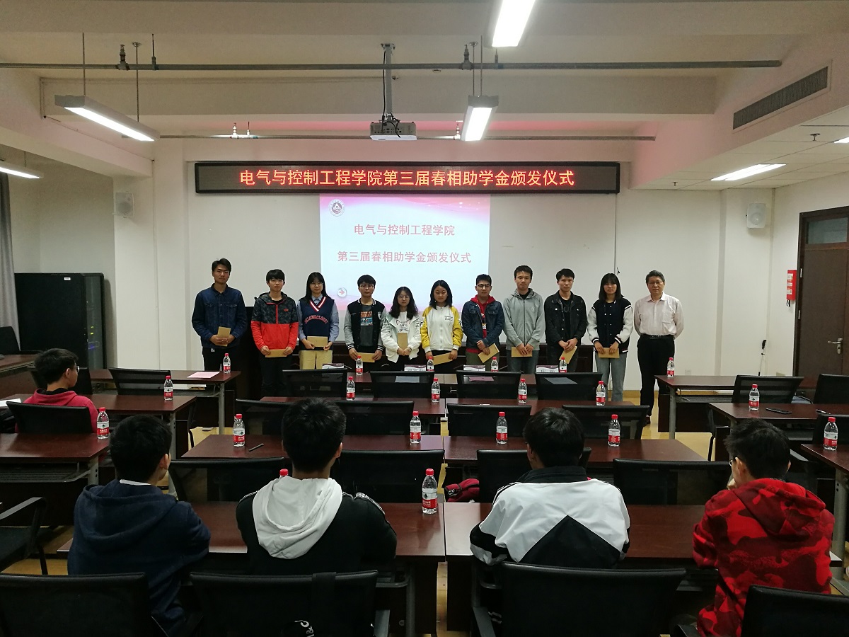 4月24日,電氣與控制工程學院在博遠樓452舉行第三屆春相助學金頒發儀式。學院院長王力、特別代表武家申、輔導員庫穎及獲助的20名學生參加儀式。儀式由院黨委副書記史寧主持。春相助學金是由電控學院自動化90級校友、博盈達投資公司總經理兼投資總監陶森設立的,已經連續頒發了三年,資助學生60人次,累計資助15萬元。本次頒發儀式陶森校友由于工作繁忙沒能親自到場,他委托校友武家申老師代為頒發此次助學金,同時通過其他方式...