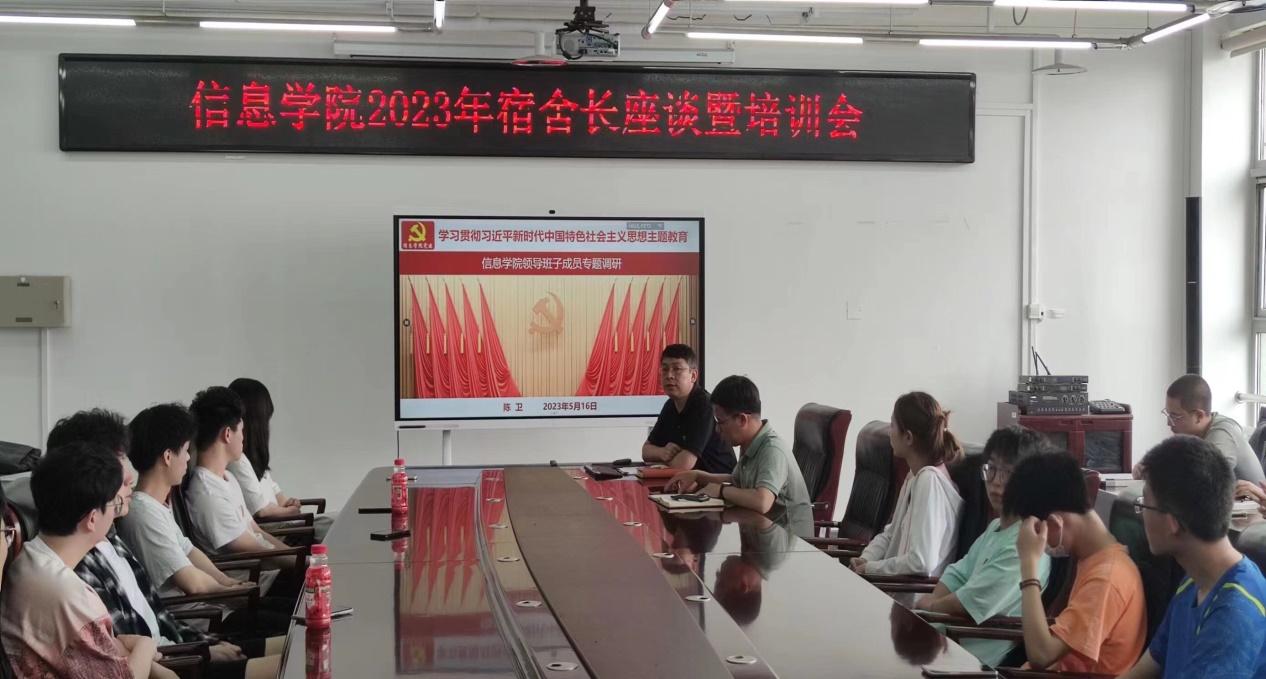 大學(xué)生宿舍思政教育已成為高校思想政治教育的重要組成部分,為了進(jìn)一步推進(jìn)信息學(xué)院“寓見一線”宿舍思政育人模式,加強(qiáng)和改進(jìn)學(xué)院學(xué)生思想政治教育工作,5月16日中午,信息學(xué)院召開2023年宿舍長座談暨培訓(xùn)會(huì),學(xué)院黨委副書記陳衛(wèi)、團(tuán)委書記楊和家、各年級(jí)輔導(dǎo)員和各年級(jí)宿舍長參會(huì)。?陳衛(wèi)老師以《以中國式現(xiàn)代化全面推進(jìn)中華民族偉大復(fù)興》為題給同學(xué)們上了一堂生動(dòng)的黨課。他要求同學(xué)們深入學(xué)習(xí)貫徹習(xí)近平新時(shí)代中國特色社會(huì)...