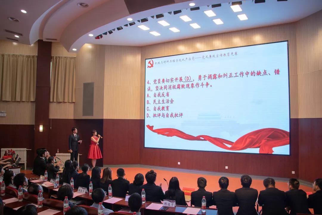 5月16日下午,機(jī)械與材料工程學(xué)院在文化會堂成功舉辦主題為從嚴(yán)治黨的黨風(fēng)廉政宣傳教育知識競賽。副校長胡應(yīng)平、紀(jì)委書記歐陽媛觀看競賽。校紀(jì)委辦公室副主任劉姝、機(jī)械與材料工程學(xué)院班子成員、學(xué)院各黨支部書記、各年級輔導(dǎo)員以及學(xué)生代表參加了活動。在詩朗誦《托起明天永遠(yuǎn)不落的太陽》之后,知識競賽正式開始。共有8只學(xué)生黨支部代表隊參加競賽,競賽分必答、搶答、選答三個環(huán)節(jié)。在必答題環(huán)節(jié),各隊選手漸入佳境,穩(wěn)扎穩(wěn)...