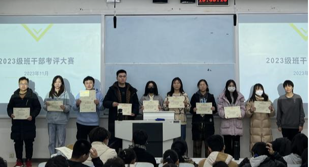 為夯實學生思想教育體系,充分發揮班干部的示范引領作用,切實提升班干部的工作能力,從而強化學生們的凝聚力以及班級班風建設,信息學院舉辦了“頭雁領航”班級干部考評大賽。2023級電類全體學生參與活動,學院黨委副書記陳衛、2021級輔導員王秀吉、田慶玥老師及2023級輔導員崔怡冉老師參與評審。大賽分為四個環節,包括看圖競猜、案例分析、個人風采展示及互動投票環節,各班班長、團支書、學習委員作為參賽代表參賽。看圖競...