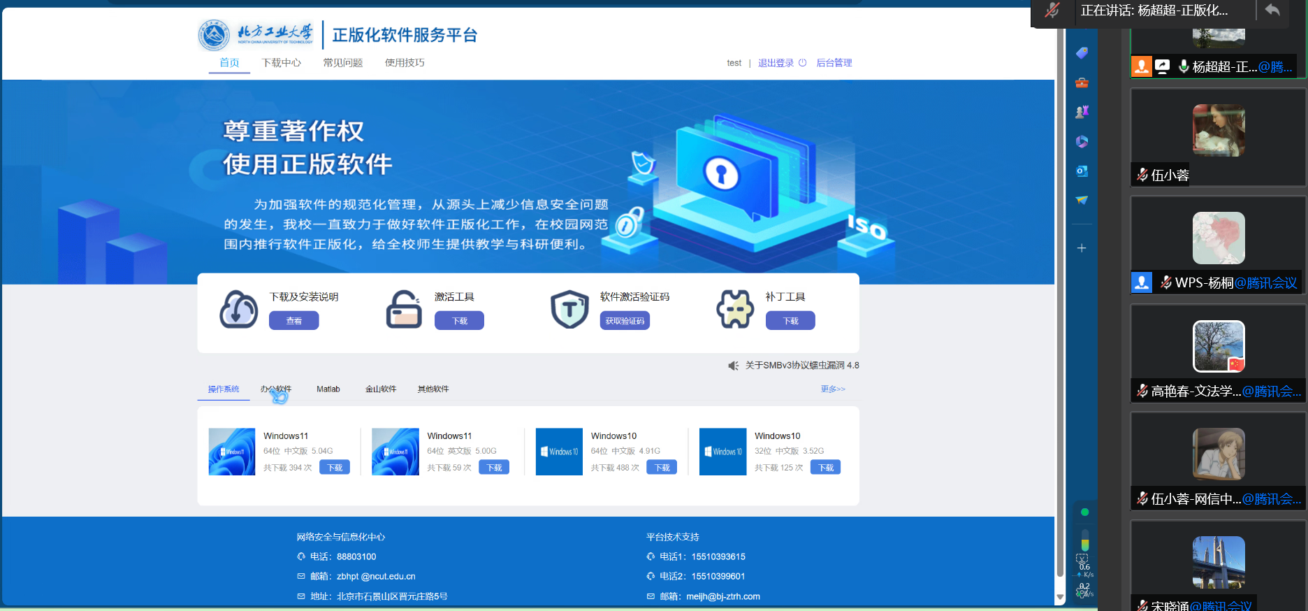 為方便師生了解國家和北京市關(guān)于軟件正版化的法規(guī)、制度和管理方法,充分認(rèn)識(shí)使用正版軟件的重要性,更好地發(fā)揮學(xué)校“正版化軟件服務(wù)平臺(tái)”對(duì)教學(xué)、科研和管理工作的支持作用,3月14日,網(wǎng)信中心在線組織了軟件正版化服務(wù)專題培訓(xùn)會(huì)。學(xué)校相關(guān)單位負(fù)責(zé)人、軟件正版化工作聯(lián)絡(luò)員等參加了會(huì)議。會(huì)議主要介紹了國家及北京市實(shí)施軟件正版化的相關(guān)政策要求、學(xué)校“正版化軟件服務(wù)平臺(tái)(http://software.ncut.edu.cn/)”的操作使用方...