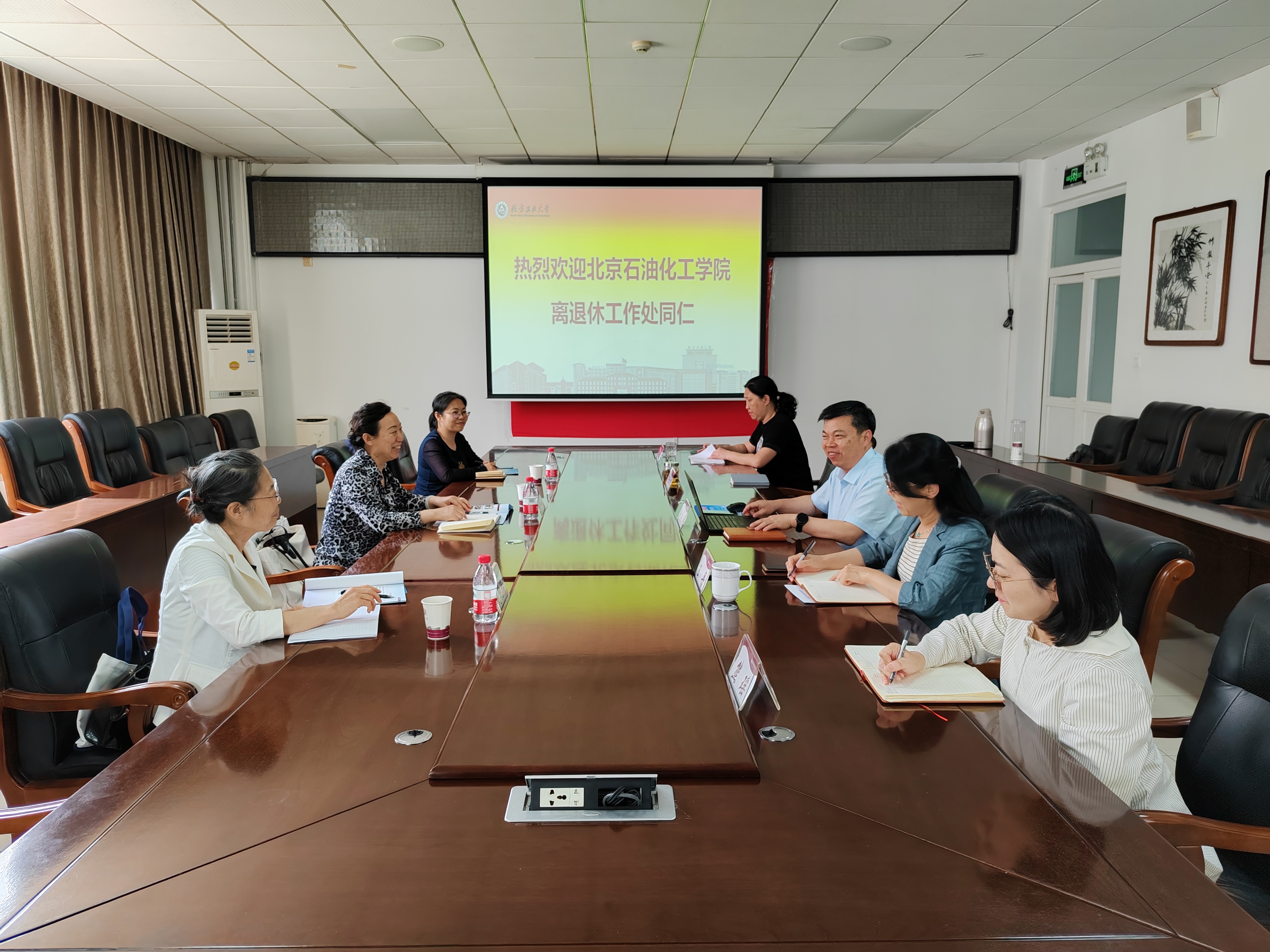 5月16日下午,北京石油化工學院離退休黨委書記、辦公室主任王紅梅等一行三人來我校調研交流離退休工作。我校離退休黨委書記、工作處處長趙永兵,副書記、副處長王丹和離退休工作處全體人員參加了座談。座談會上,趙永兵對北京石油化工學院離退休工作辦公室同仁的到來表示歡迎,介紹了我校離退休工作各方面的情況,王丹著重介紹了黨建工作情況。雙方就離退休黨委換屆工作、黨支部建設、關工委工作、文體活動等情況進行了交流研討...