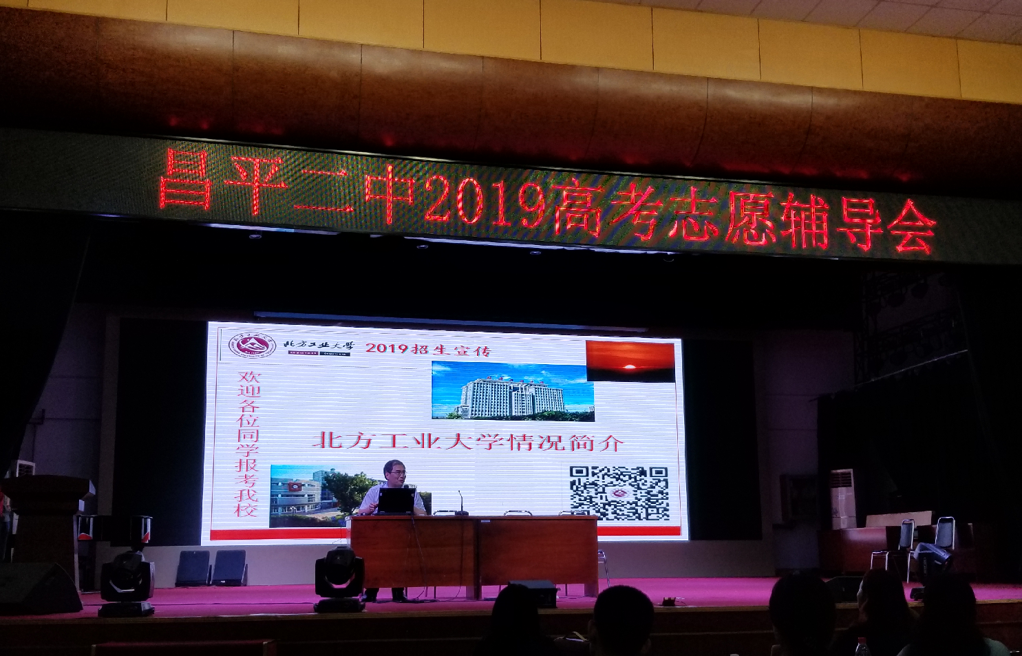 ???為擴大學校影響力,讓考生全面深入了解我校辦學情況,根據(jù)學校招生工作的安排,應昌平二中的邀請,理學院院長張建國、理學院黨委副書記李冱岸于6月9日上午赴昌平二中開展招生宣傳活動。昌平二中張云副校長接待并做了細致安排。此次活動是昌平二中在高考結束的第二天為該校家長學生安排的一次志愿填報輔導會。在該校老師對廣大家長考生進行了填報志愿輔導后,我校李冱岸教授就北方工業(yè)大學的基本情況、招生政策、學校特色...