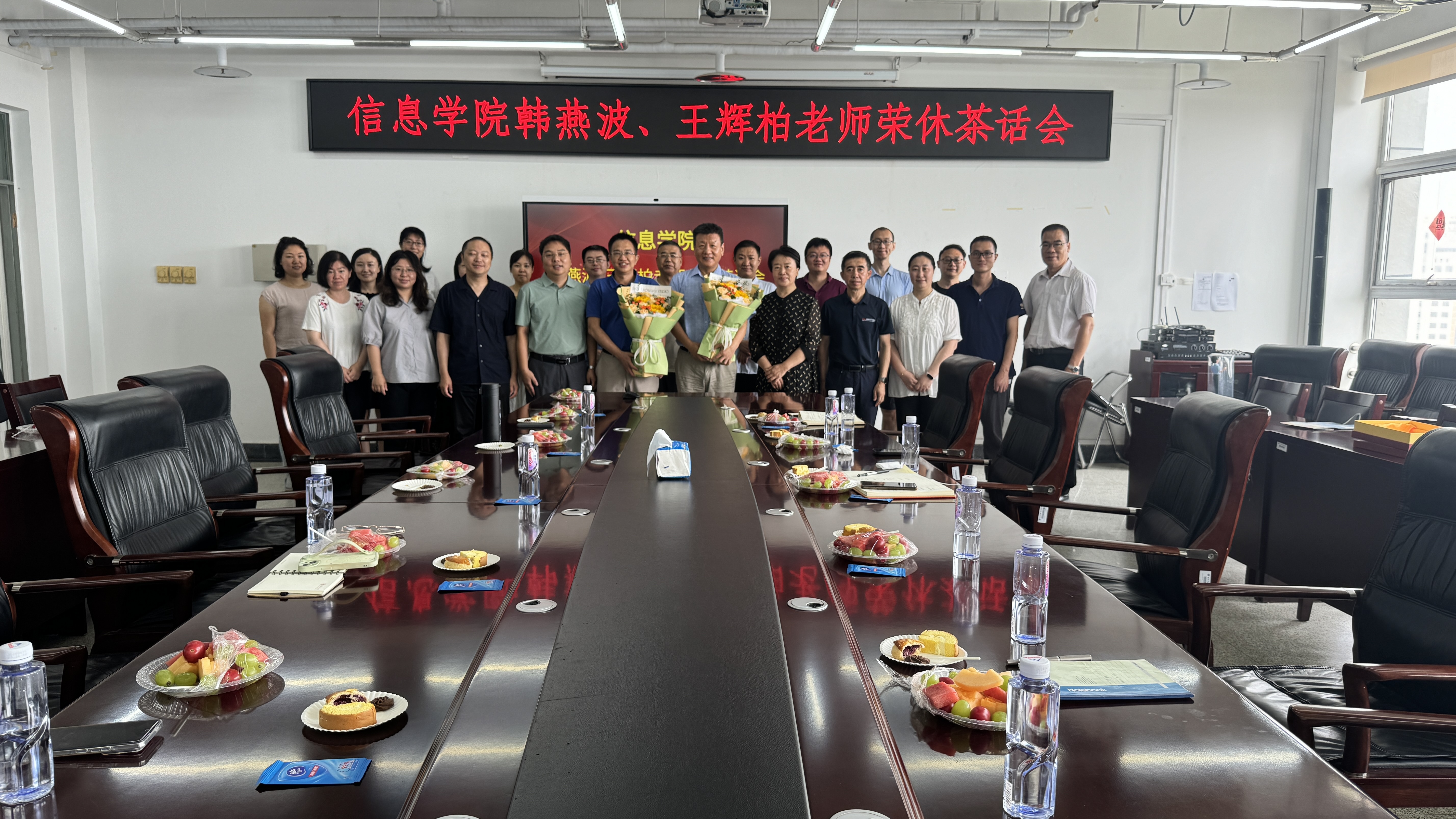 7月12日上午,信息學院在瀚學樓1014會議室舉行韓燕波和王輝柏兩位教授的榮休茶話會。學校黨委副書記田紅芳、校工會副主席楊培鑑、信息學院院長馬禮,學院教師代表參加了茶話會。會議由學院黨委書記王偉賓主持。王偉賓分別介紹了兩位教授過去40余年的學習、工作情況,以及在我校工作期間取得重要業績和作出突出的貢獻情況。退休老教師韓燕波、王輝柏兩位教授飽含深情地回憶了入校工作幾十年以來,學校發展的巨大變化,感受到學校...