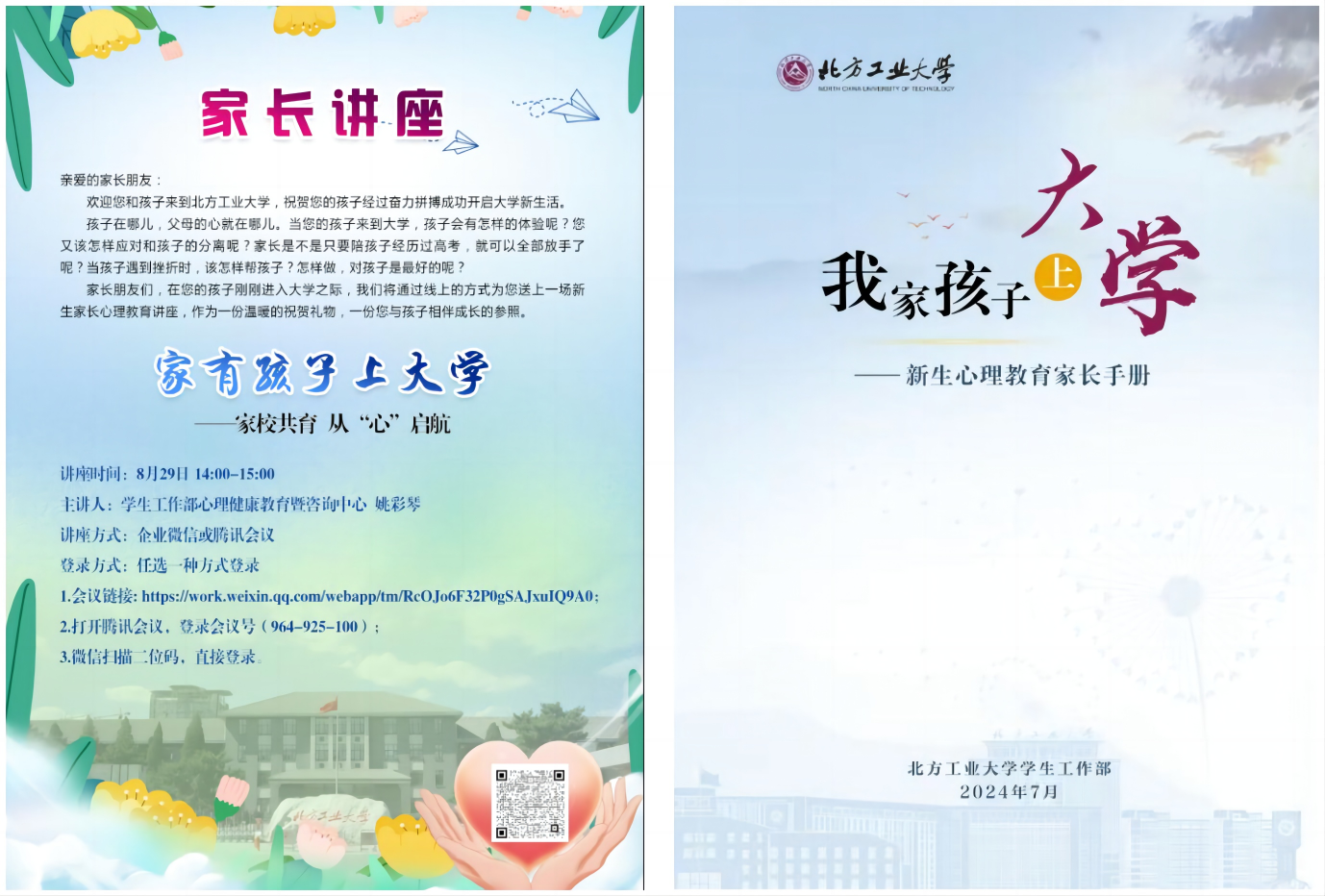 在8月29日新生報到之際,學工部心理中心通過線上、線下方式舉辦了多場次新生家長心理課堂。課堂以“家校共育,從‘心’啟航”為主題,結合豐富的新生心理案例,探討大學新生在適應階段常見心理問題和可能出現的心理挑戰,提出父母支持孩子的有效方法,倡導家長以理解、接納、傾聽、溝通、鼓勵及適度引導的方式,與孩子攜手同行。同時,強調父母在子女成長關鍵期應注重自我關愛,以積極心態調整自我,成為孩子的榜樣、伙伴與堅強...