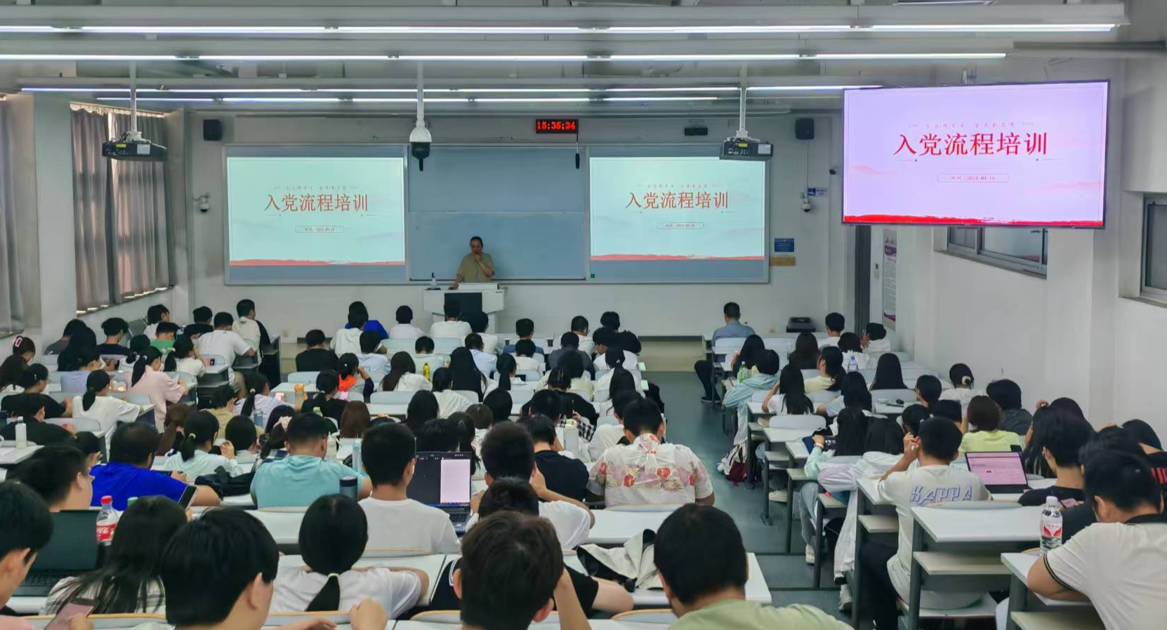 9月19日下午,理學(xué)院黨委在瀚學(xué)樓0208開展2024級新生入黨啟蒙教育。黨支部書記代表、新生輔導(dǎo)員、黨務(wù)秘書和全體2024級新生參加了教育活動。學(xué)院黨委副書記賀映勇向新同學(xué)們介紹了中國共產(chǎn)黨基本知識,傳達了習(xí)近平總書記對青年學(xué)生的新要求、新期望。他要求同學(xué)們端正入黨動機,努力學(xué)習(xí),積極參加各類學(xué)生活動,提醒同學(xué)們要積極樹立遠大理想,下苦功夫,求真學(xué)問,學(xué)習(xí)上刻苦鉆研,生活上嚴守紀律,在大學(xué)四年和研究生三年不...