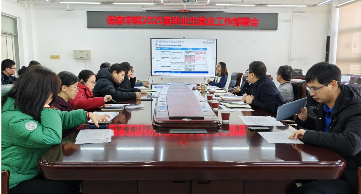 為深入貫徹落實國家、北京市和學校關(guān)于畢業(yè)生就業(yè)工作的決策部署和指示精神,扎實做好2025屆本科畢業(yè)生就業(yè)工作,凝心聚力、全力推進2025屆畢業(yè)生更充分更高質(zhì)量就業(yè)。12月25日,信息學院在瀚學樓1014舉辦2025屆畢業(yè)生就業(yè)工作推進會。學校招就處處長王宏波、信息學院領(lǐng)導班子、系主任、2025屆畢業(yè)班全體班導師和畢業(yè)班輔導員參加此次會議。會議伊始,就業(yè)輔導員魏靜向?qū)W院匯報教育部高校畢業(yè)生畢業(yè)去向分類界定及標準解讀;學...