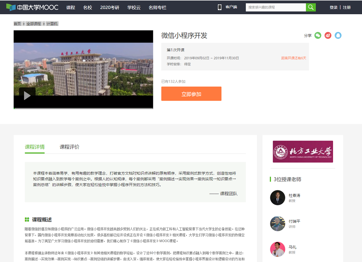 8月26日,由信息學院杜春濤老師、付瑞平等老師負責的《微信小程序開發》課程在“中國大學MOOC”平臺成功上線,課程將于2019年9月2日正式開課。這是目前為止在國內主流MOOC平臺(愛課程、學堂在線、智慧樹等)上線的第3門與微信小程序開發相關的MOOC課程。該課程采用案例式教學方式,共設計了59個教學案例,每個案例都采用“案例描述→實現效果→案例實現→知識要點→案例總結”的步驟,系統闡述了微信小程序開發的方法和技巧,...