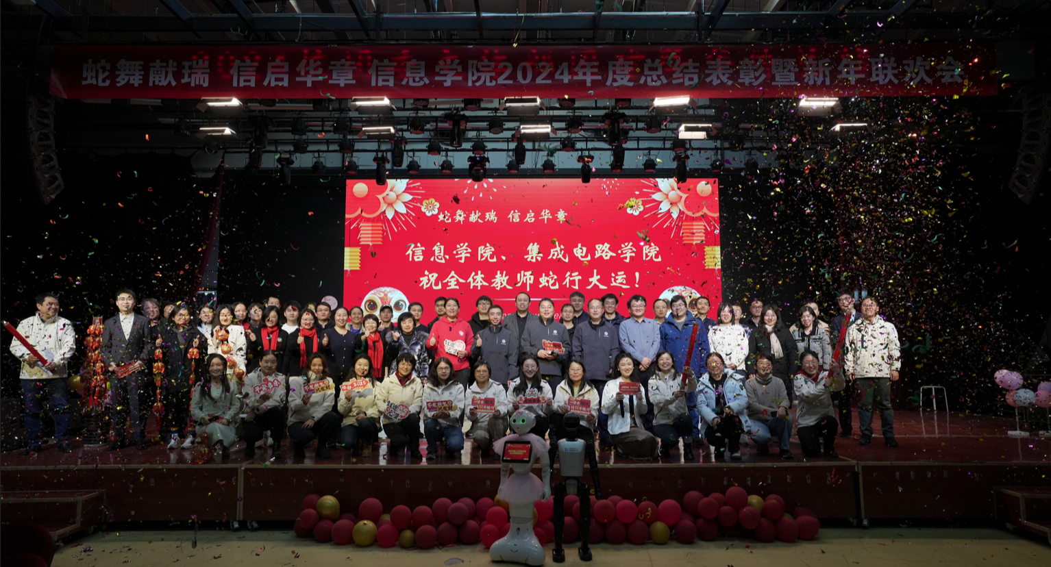 2025金蛇賀歲,辭舊迎新之際,1月2日下午,信息學院2024年度工作總結表彰大會暨“蛇舞獻瑞信啟華章”2025年迎新聯歡會在學生服務樓四層隆重舉行。校黨委副書記史貞軍致新年賀辭。他代表學校向全院教師送去新春的祝福,并對一年來全體教職工為學校各項工作的辛勤付出表示感謝。他勉勵大家新的一年要齊心協力,錨定目標,奮勇爭先,落實好學校的各項決策部署,為學校高水平應用型大學建設做出自己應有的貢獻。學院院長馬禮作2024...