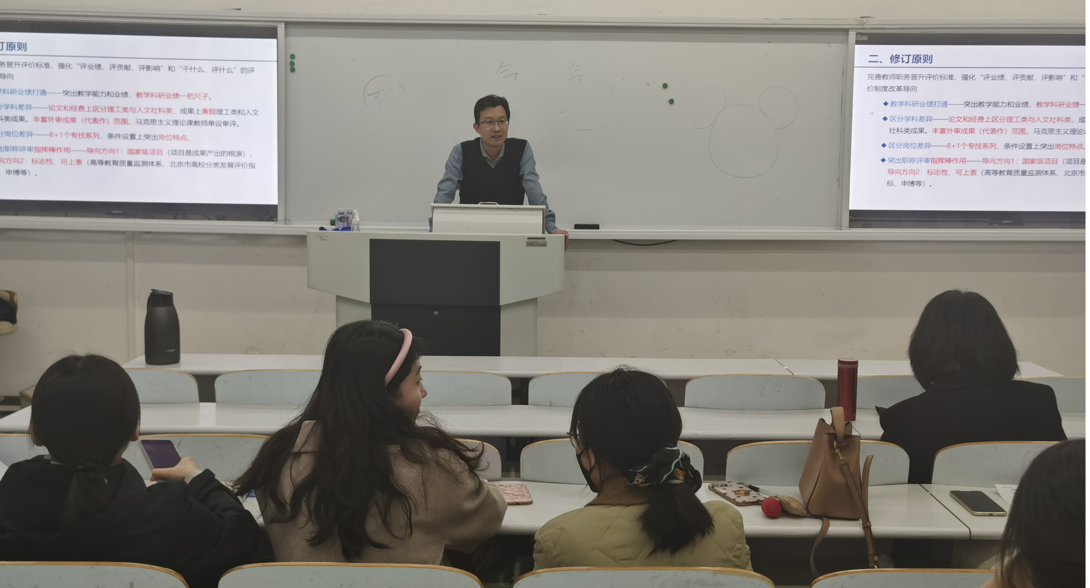 為貫徹落實校黨委關于人事人才工作有關決策部署,幫助教師深入了解學校人事人才各項政策,促進教師成長,3月26日下午,理學院邀請人事處副處長焦志偉為理學院教師做宣講報告。焦志偉詳細解讀了學校近期出臺的職稱評審文件,對文件出臺的背景、修訂原則、修訂過程、修訂要點及修訂的具體條款進行了說明;重點介紹了國家、北京市的高層次人才政策以及學校人才引育體系的框架、主要內容和近年來各人才項目的重點支持領域。焦志偉的...