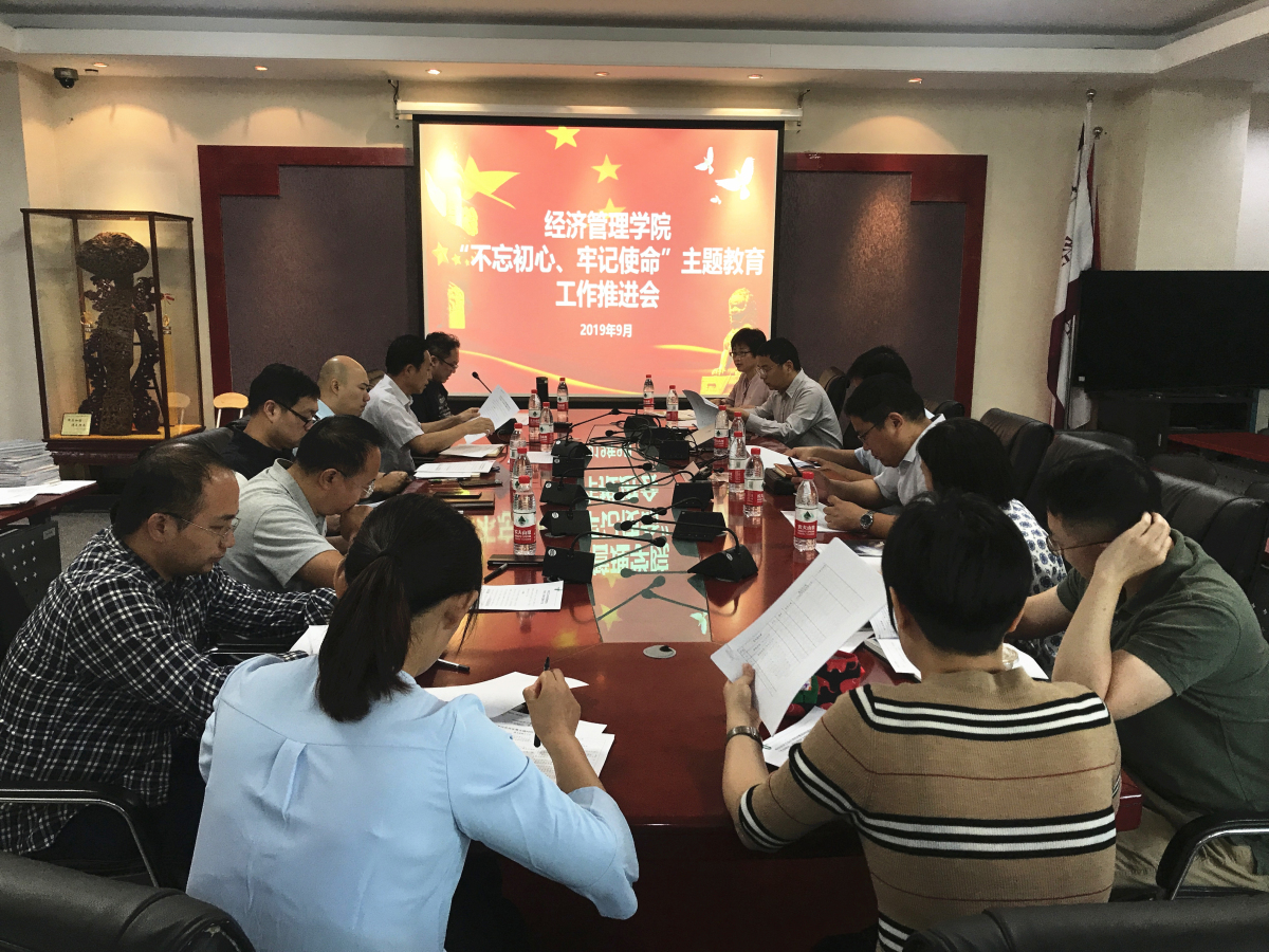為深入貫徹習近平總書記重要指示批示精神和《中共中央關于在全黨開展“不忘初心、牢記使命”主題教育的意見》要求,9月19日下午,經(jīng)濟管理學院在勵學樓201會議室集中開展“不忘初心,牢記使命”主題教育工作推進會。會議由學院黨委書記王偉賓主持,學院黨委委員及各黨支部書記參加了此次會議。?????? 會上,王偉賓書記結(jié)合校黨委書記鄭文堂在學校動員部署大會上的講話精神,帶領大家解讀習近平總書記的重要指示,學習了“不忘初...