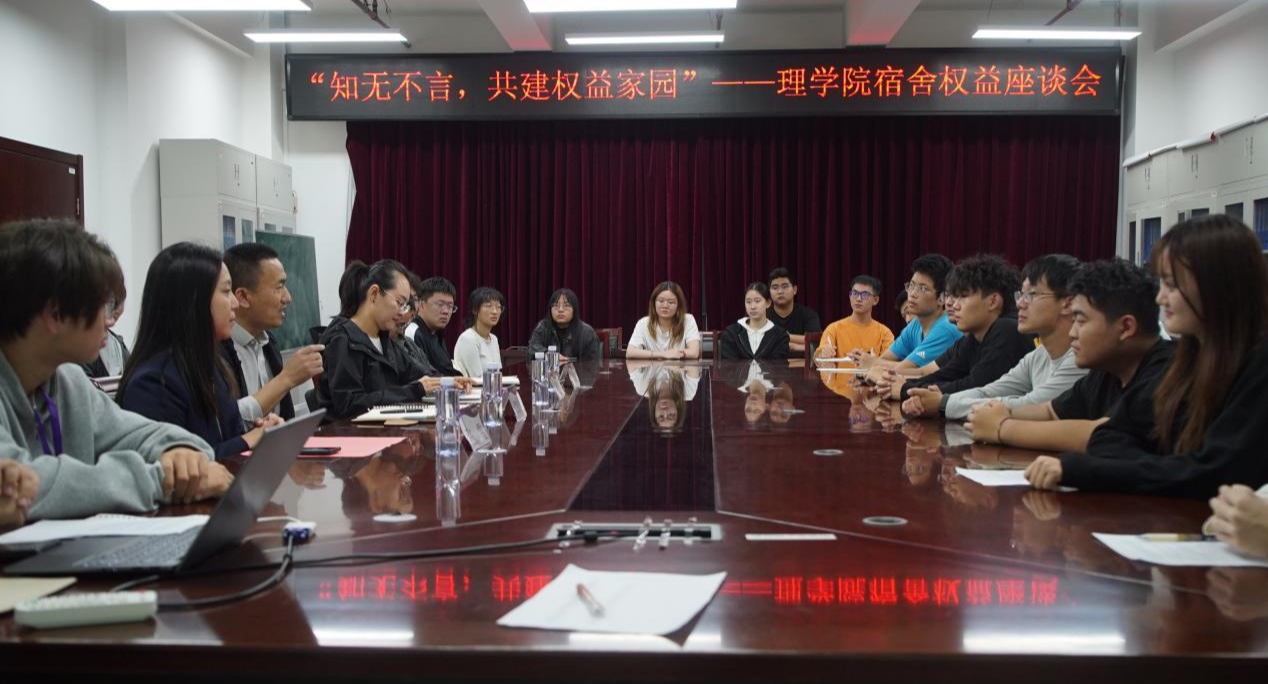 為深化“以生為本”的育人理念,打通宿舍管理服務的“最后一公里”,理學院于10月14日下午在博遠樓805舉辦了“知無不言,共建權益家園”主題宿舍權益座談會。座談活動以問題為導向搭建協同溝通平臺,推動宿舍管理提質增效。理學院黨委副書記賀映勇、團委書記夏丹梅、輔導員熊敏、公寓管理部張雪及全體2025級本科新生宿舍長參會。新生宿舍長聚焦住宿生活關鍵訴求,圍繞設施維護、用電安全、公共服務等核心議題提出意見和建議。針...