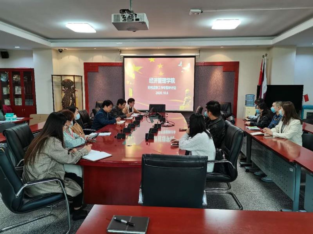 10月6日下午,經濟管理學院在勵學樓201會議室召開學院紀檢監察工作研討會,學院黨委書記王偉賓、副書記趙潔,黨委紀檢委員王志亮、黨風廉政特約監督員王麗新、各教工支部和學生支部的紀檢委員參加了本次會議。趙潔副書記首先傳達了學校紀檢監察工作的總體要求,強調要不斷加強自身理論學習,強化學習效果,將學院黨委在學校第三輪巡察過程中暴露出的問題逐一分析并真抓實改。要時刻牢記作風建設,營造風清氣正的良好政治生態。...