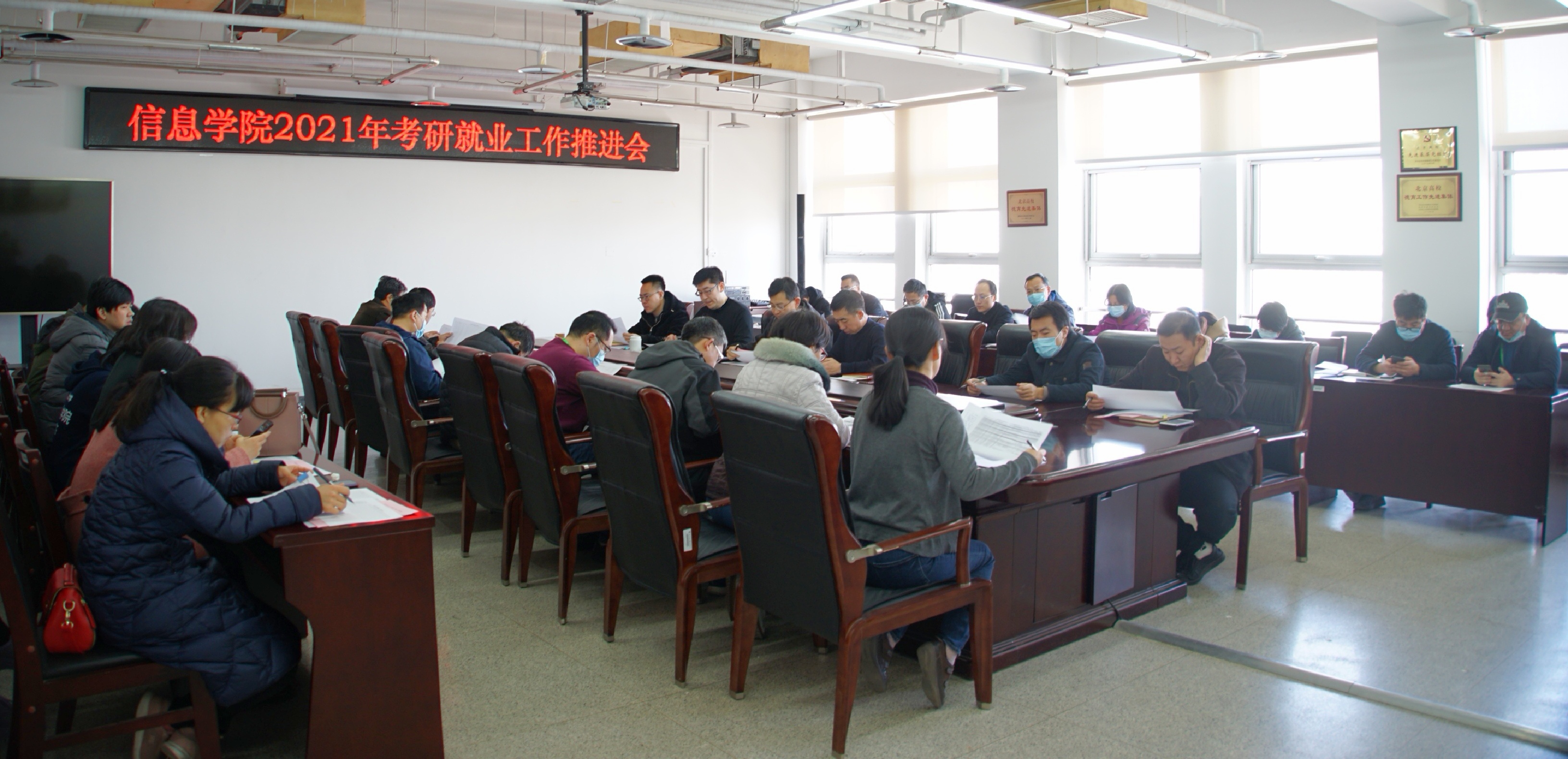 為推進“三全育人”落細落實,促進學院人才培養質量再提升,信息學院自2020年10月建立了以“院長書記牽頭--副院長副書記統籌推進--系主任責任教授專業指導--輔導員‘一人一策’就業指導--班導師‘一班一臺賬’就業跟蹤”為主體的就業工作支持體系,助力畢業生高質量就業。為進一步凝聚合力,加強統籌協調,推進工作落實,信息學院于3月16日召開2021屆畢業生考研就業工作推進會,學院領導班子、各系主任、責任教授、2017級各班導...